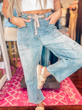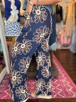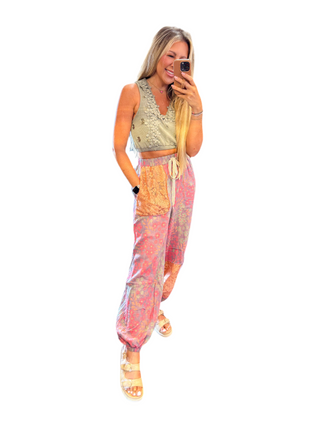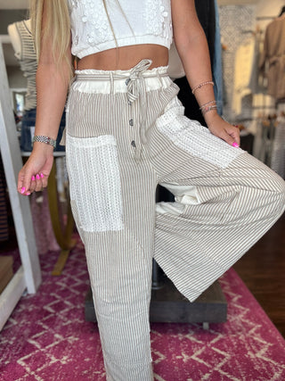 POL Mix n Match Woven Striped Print and Thermal Knit Pants in Sand Stripe