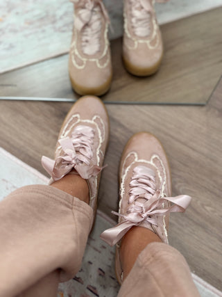 DOORBUSTER Eleanor Satin and Lace Sneaker- Nude Pink