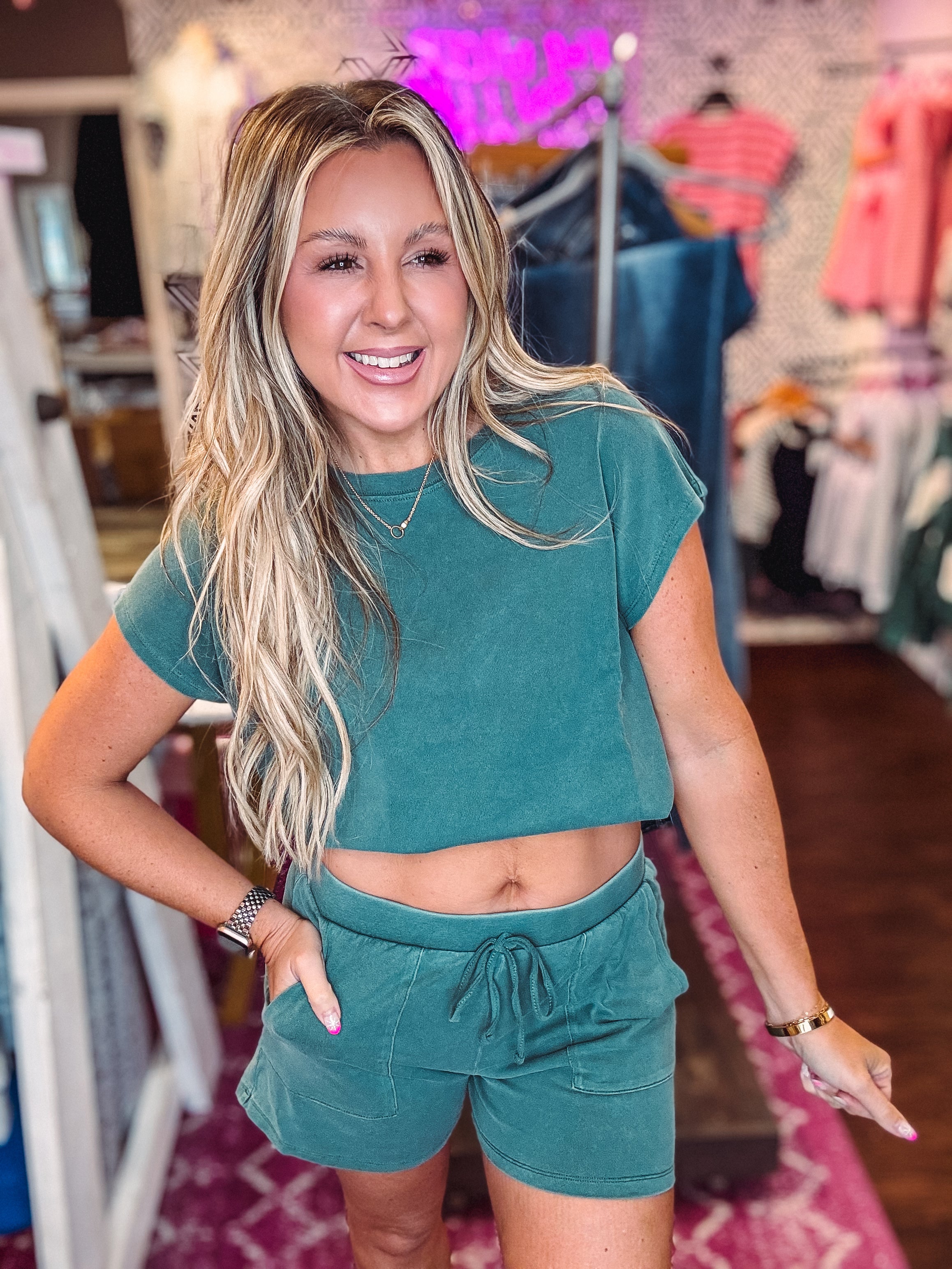 Sleeveless Crew Neck Top and Shorts Set-Dark Teal