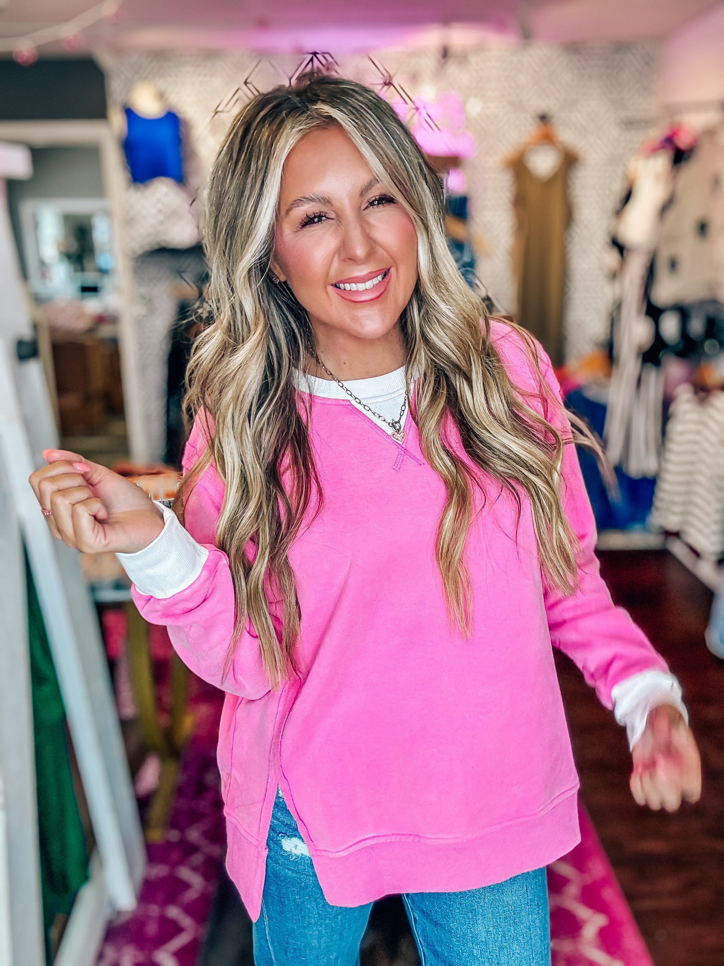 Cotton Candy Pink Snow Washed Oversized Sweatshirt