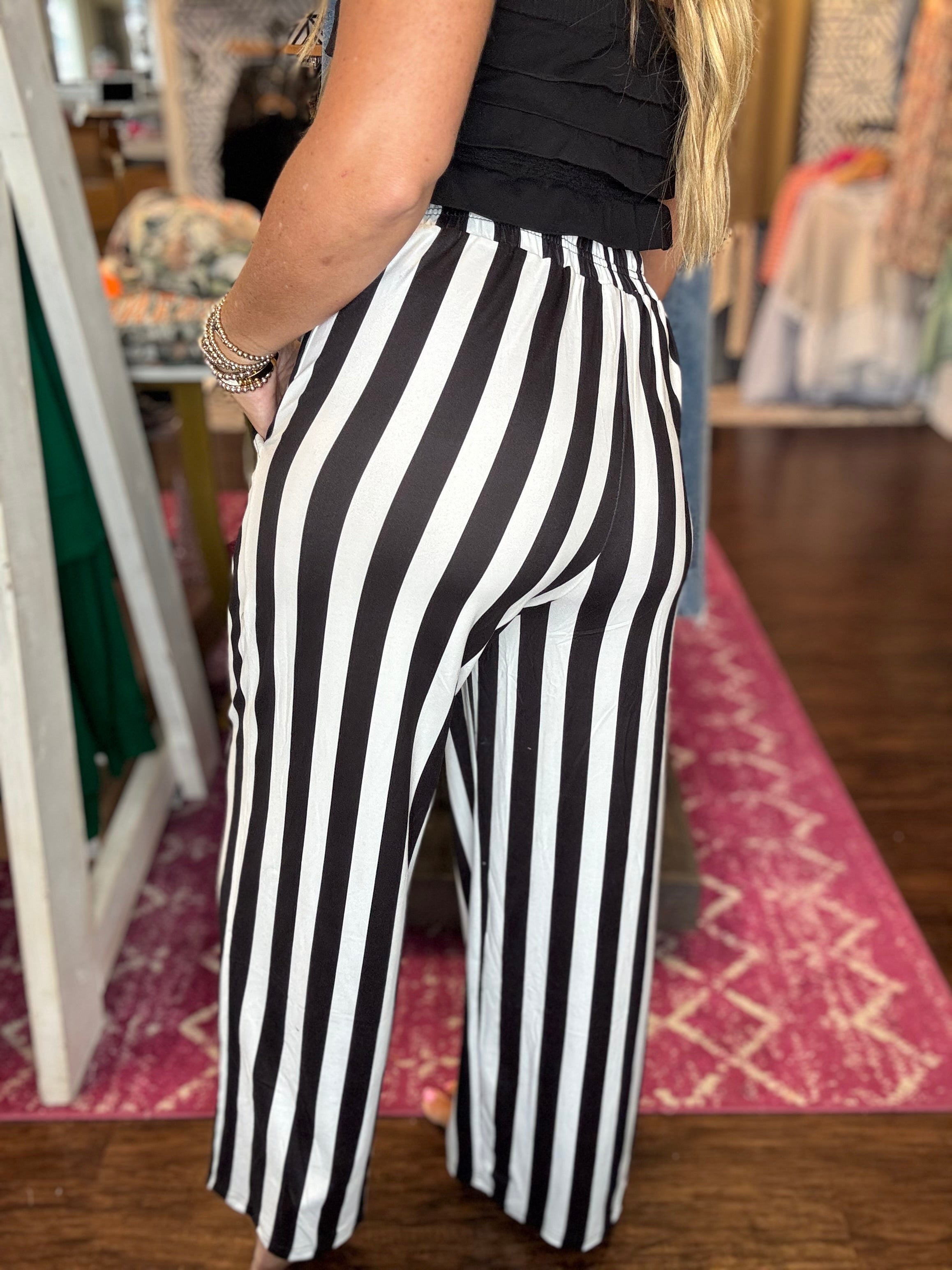 Cloud soft and so so stretchy! These stripe pants are the perfect way to add a "pop" to any outfit!! Features side pockets, wide legs and elastic waist with faux drawstring.