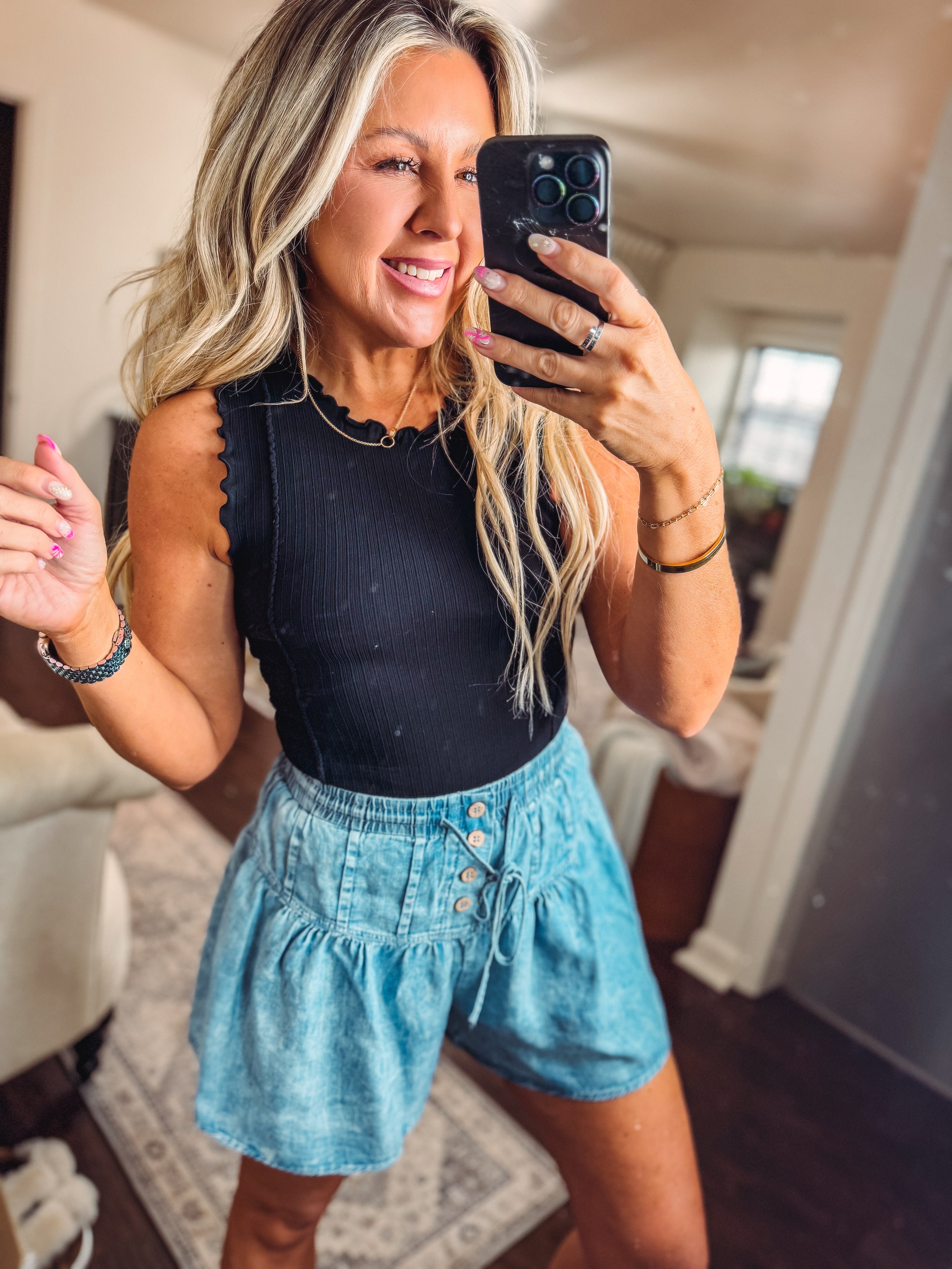 Lettuce Hem Casual Fitted Knit Top-Black