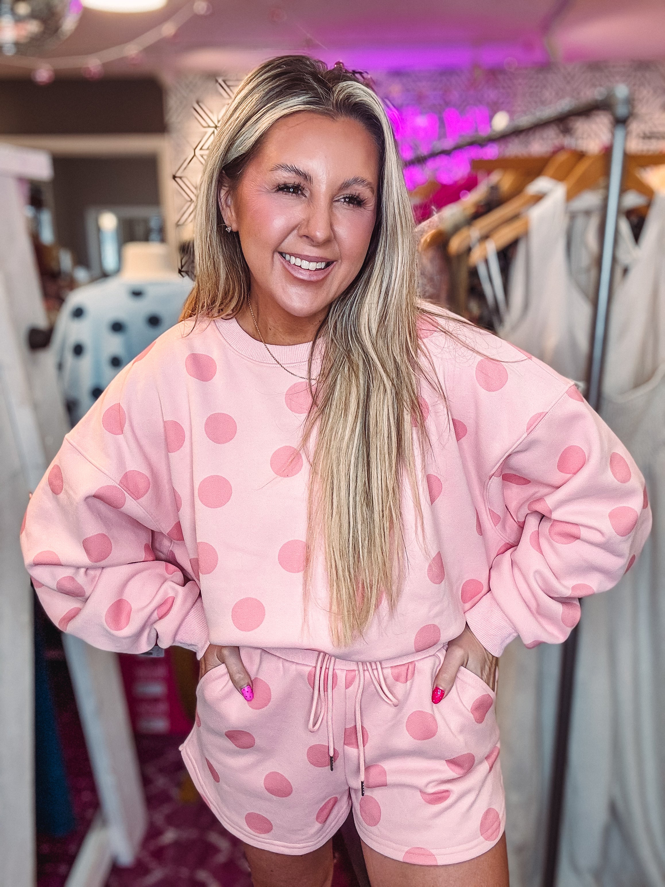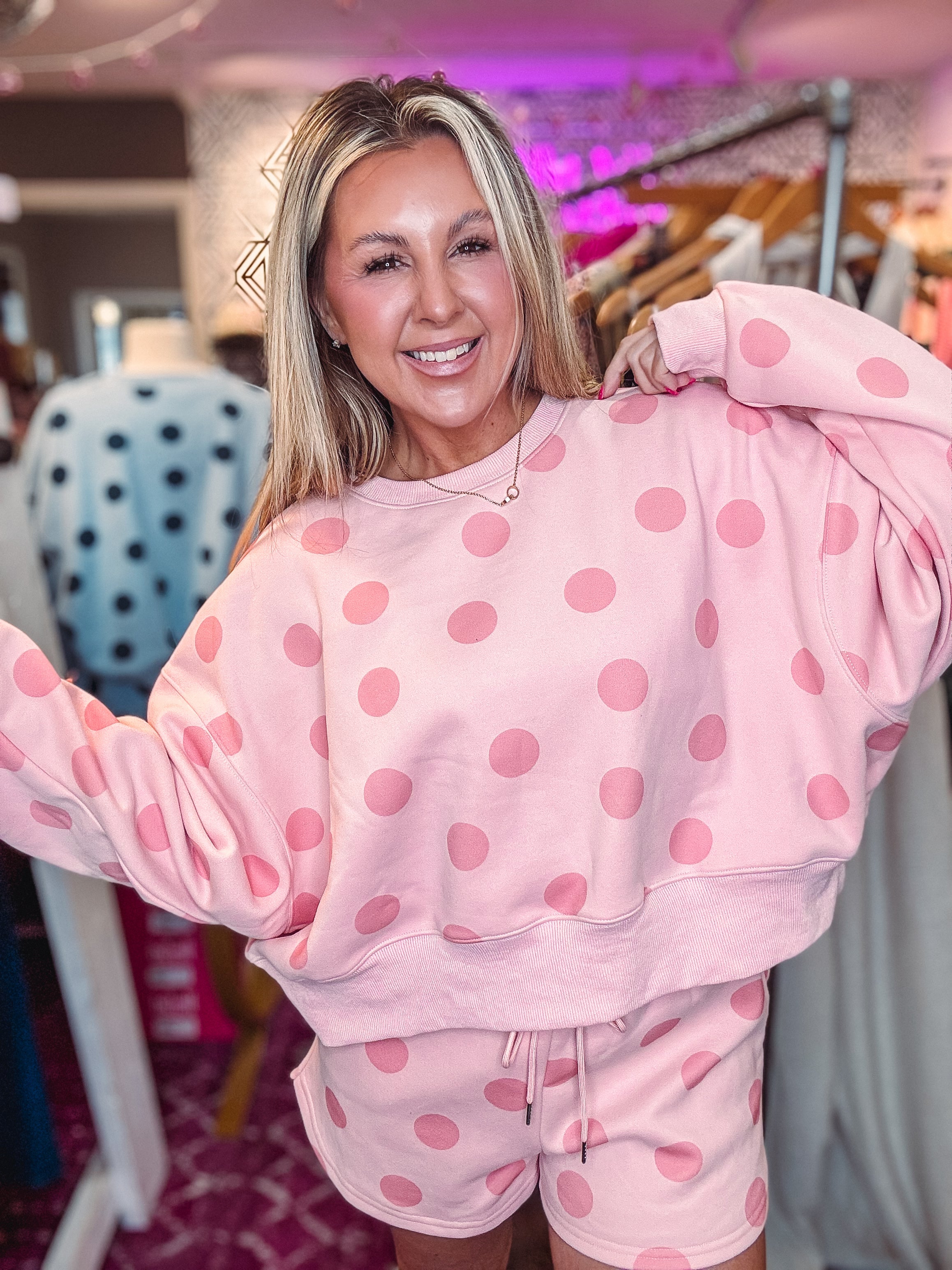 BLUSH POLKA DOT CROP SWEATSHIRT